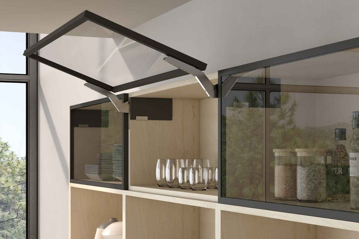 La decoración también entra en la cocina. Se exhiben vajillas, libros y objetos personales. Nuestras vitrinas con iluminación integrada aportan calidez y diseño al conjunto.