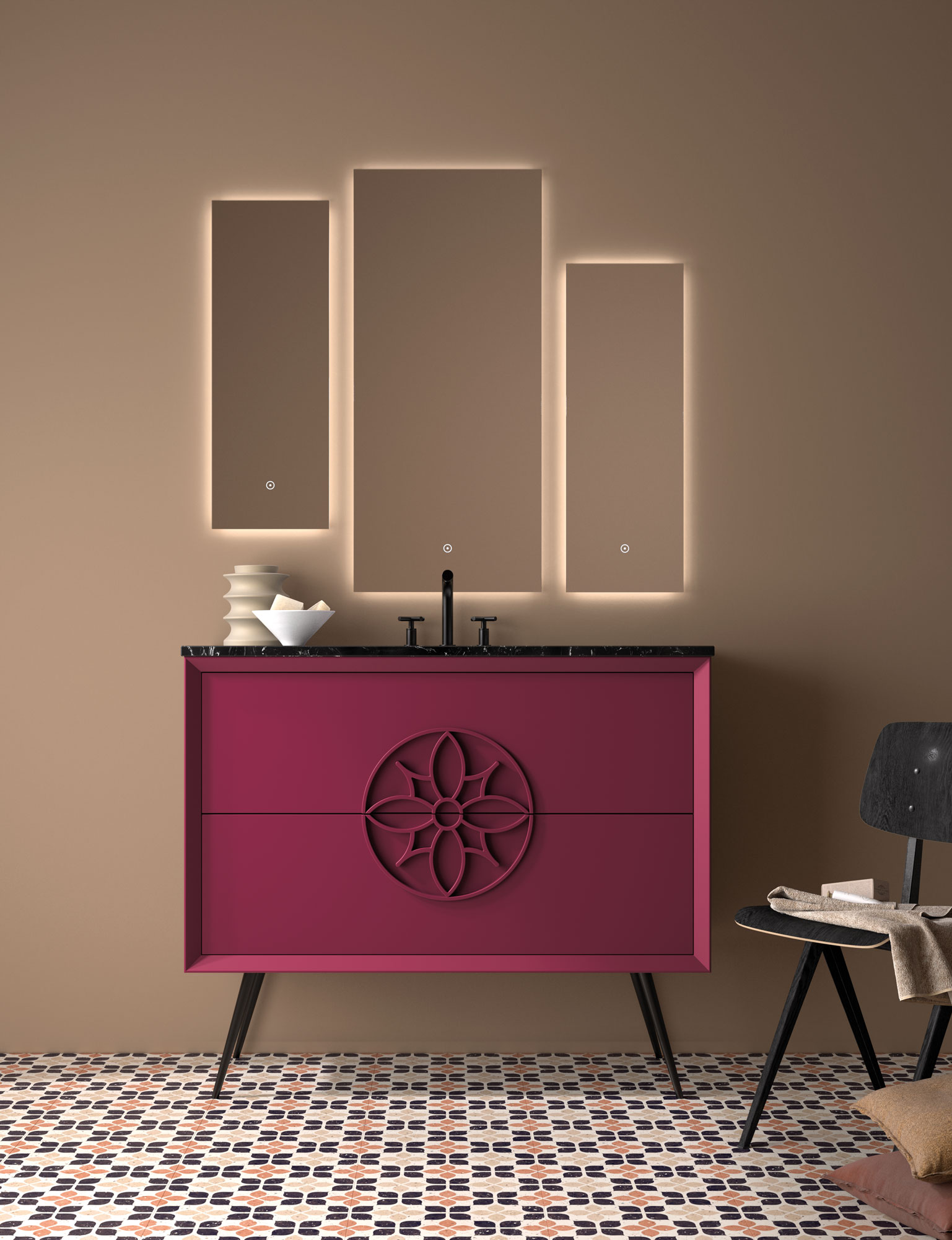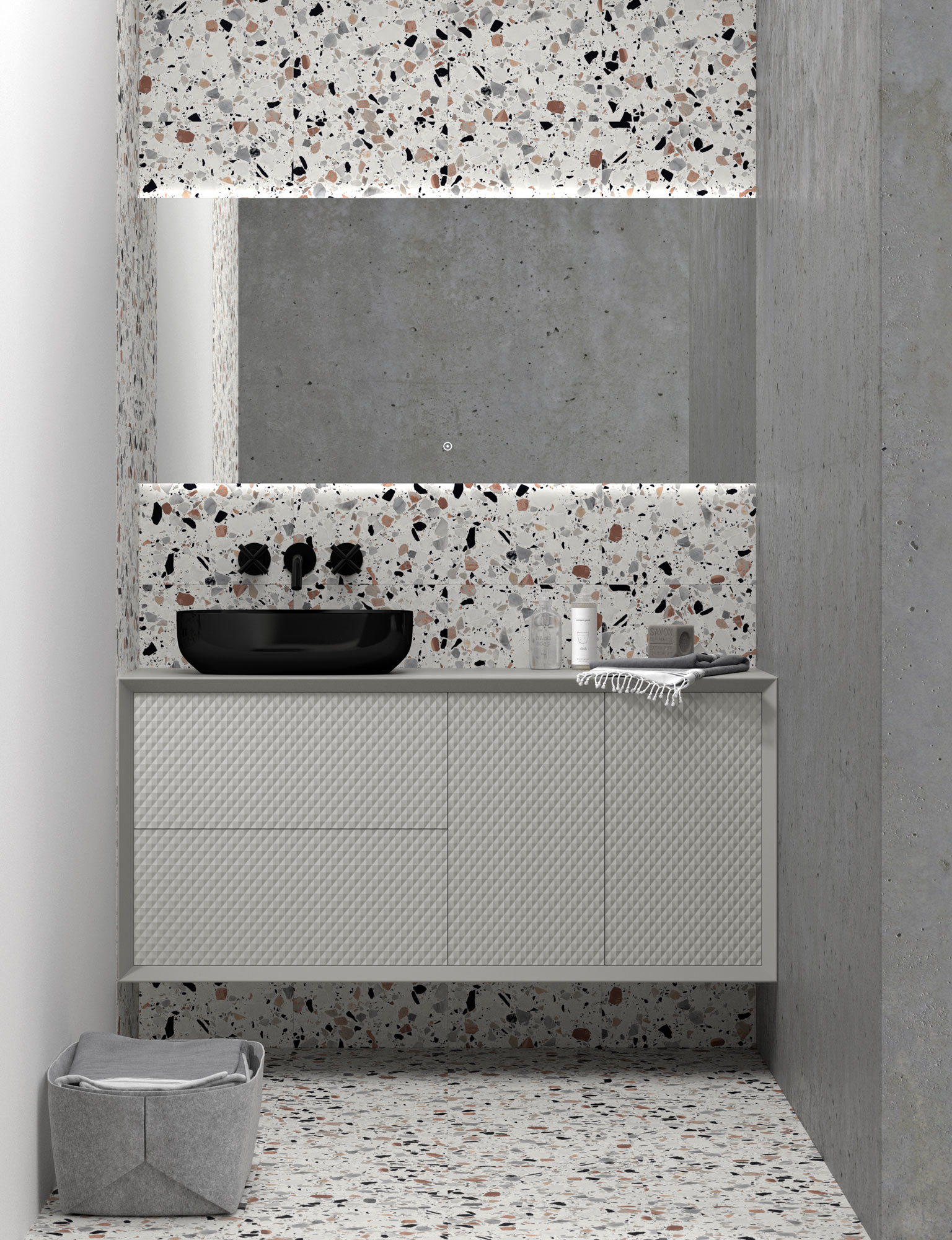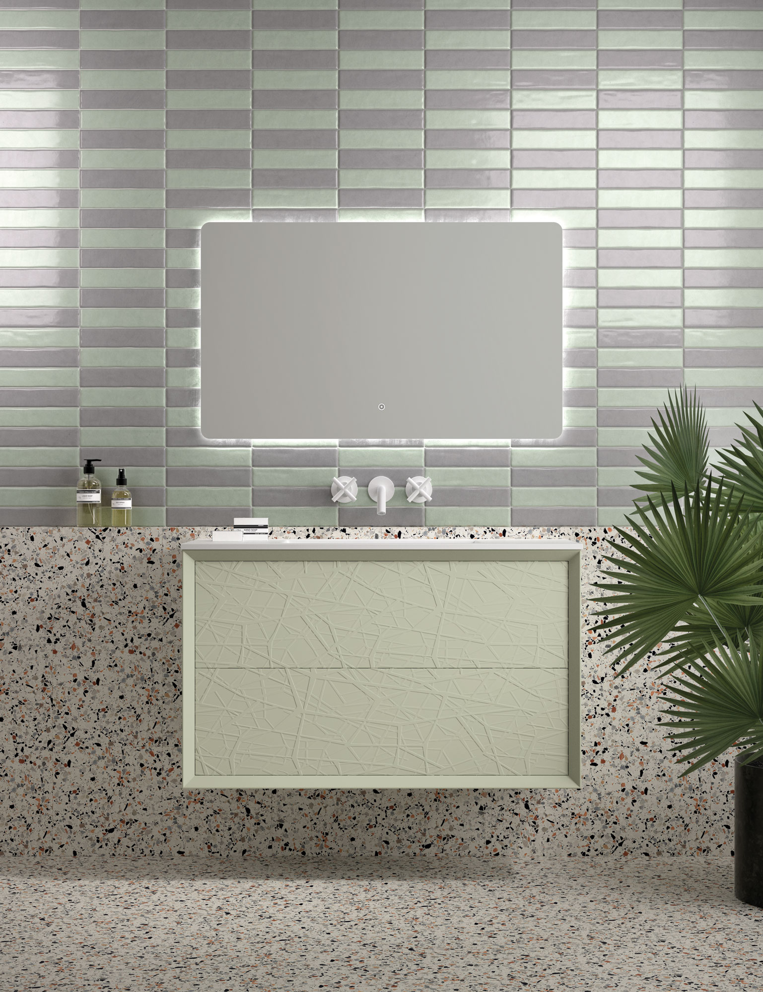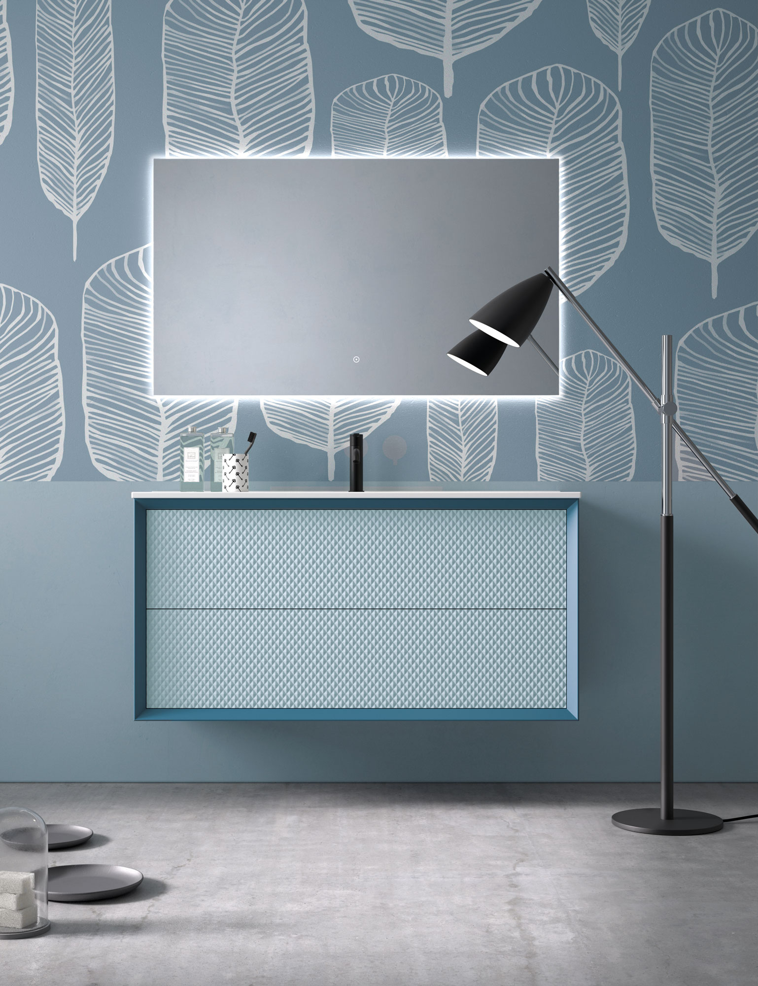 Una de las señas de identidad de esta colección son sus frentes con textura en relieve. Estos diseños 3D crean un juego de luces y sombras que añade profundidad y dinamismo al baño. Es una manera original de salir de lo convencional y darle a tu baño un aire sofisticado y moderno.